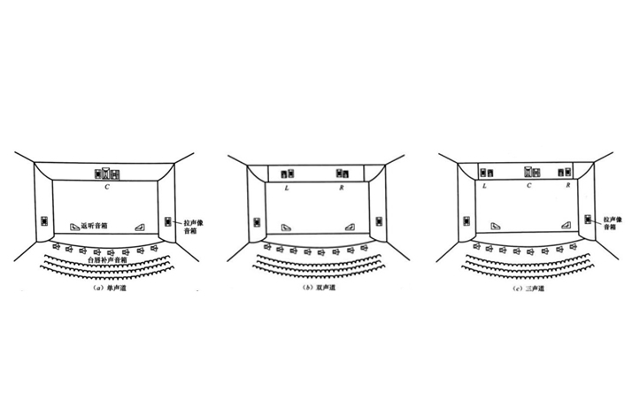 會議廳、劇場、音樂廳等的擴聲系統按其聲道數分類,可分為單聲道系統、雙聲道系統、三聲道系統等,他們分別的布置方法及優勢如下: