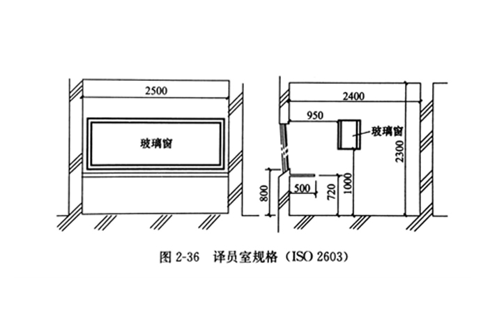 a空間寬敞時宜采用標準尺寸,一個或兩個翻澤員時的寬度應大于或等于1.60m,三個翻譯員時的寬度應大于或等于2.4omi深度應大于或等于1.60m高度應大于或等于2.00m。