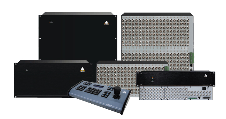 視頻矩陣呢?簡單來說就是根據需求把M路輸入信號切換到N路輸出終端上面的一種設備(這種信號可以是音頻的,可以是視頻的,也可以是混合的)。利用鍵盤或其他控制方式,可以把輸入的圖像切換到任意輸出端上,同時可以控制攝像頭的上下、左右,鏡頭的遠近、長短以及攝像機的開關。現在安防業中已出現硬盤錄像機,它能部分地代替矩陣的功能,同時又可以取代原來的老式錄像機,還有畫面分割器。但是大家不要認為錄像機能取代矩陣切換器,原因有以下幾點:(1)計算機的資源是有限的;(2)硬盤錄像機采用的是計算機控制,它的發展將受到計算機發展的限制;(3)任何一件事物的發展到最后必將單一化工作,這樣才能使系統工作穩定。現在大家只是太注重硬盤錄像機的發展,所以忽視了矩陣切換器的存在,同時也由于矩陣切換器還沒有向數字化轉換,才使越來越多的人認為只要有硬盤錄像機就行了,但大家不要忘了,硬盤錄像機目前只能做到64入,而矩陣現在可以做到1024入,這個硬盤錄像機短時間內是做不到的!